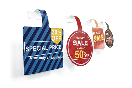 風や空調でゆらゆらと揺れることで、お客様の視線を自然と惹きつけるスイングPOPは、安価で省スペースでも設置可能です。